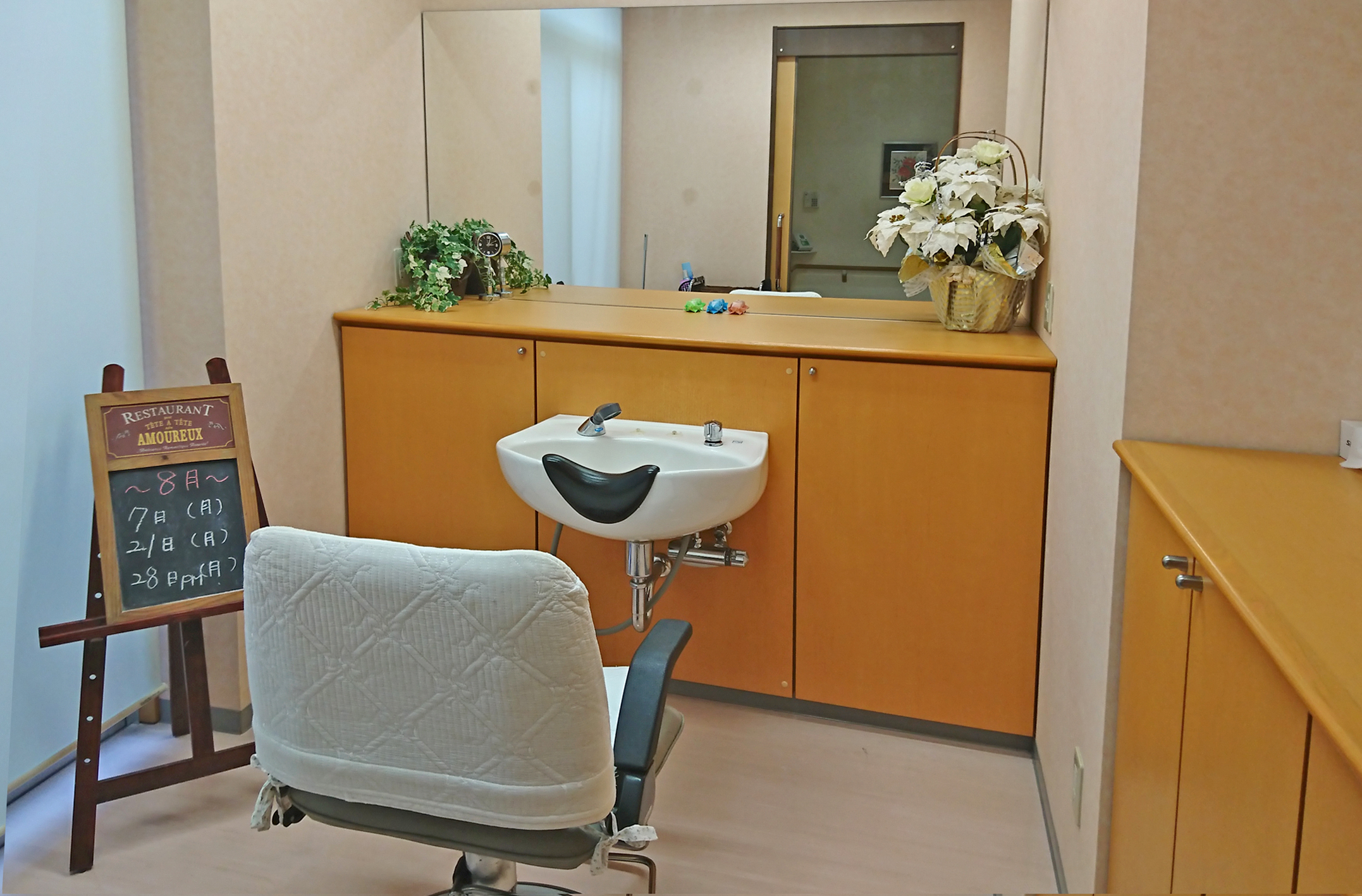 毎週月曜日は移動美容室による出張美容院。医務室では提携医療機関による往診を行います。ご家族が利用できるゲストルームもございますので遠方のご家族も安心です。
